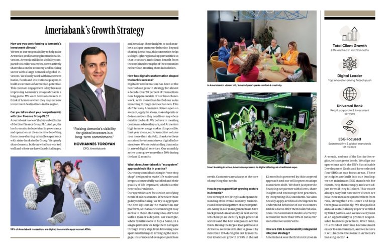 Ռազմավարական գործընկերությունների, թվային նորարարությունների և կայունության հանդեպ հանձնառության միջոցով «Ամերիաբանկը» շարունակում է ամրապնդել և՛ իր շուկայական առաջատար դերը, և՛ Հայաստանի տնտեսական զարգացումը: